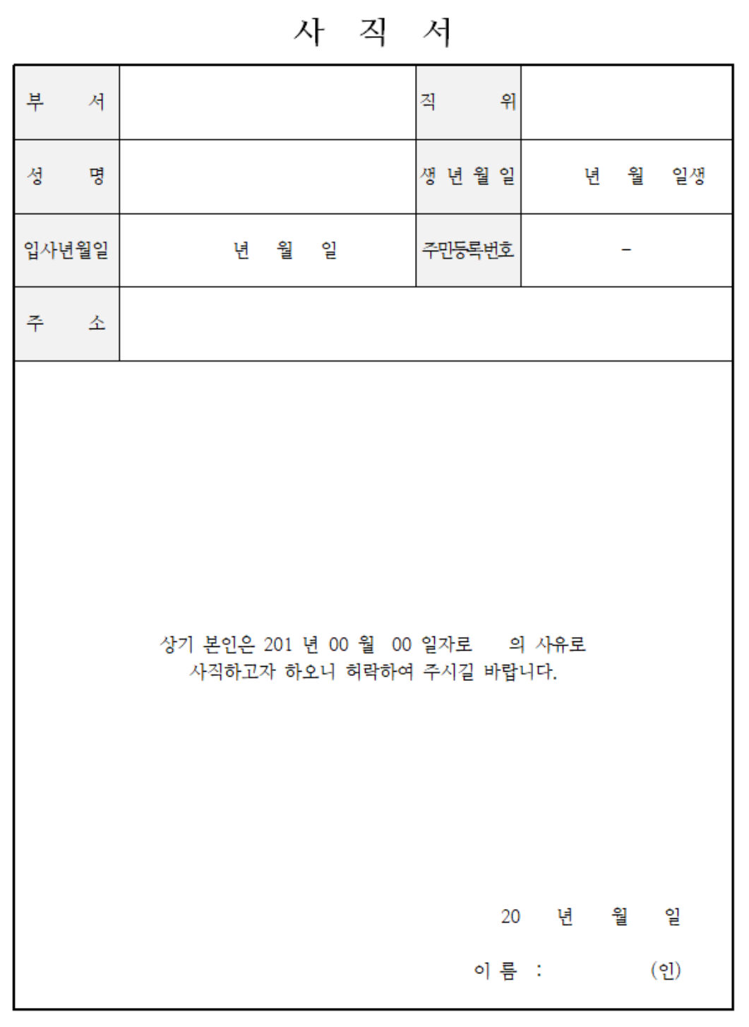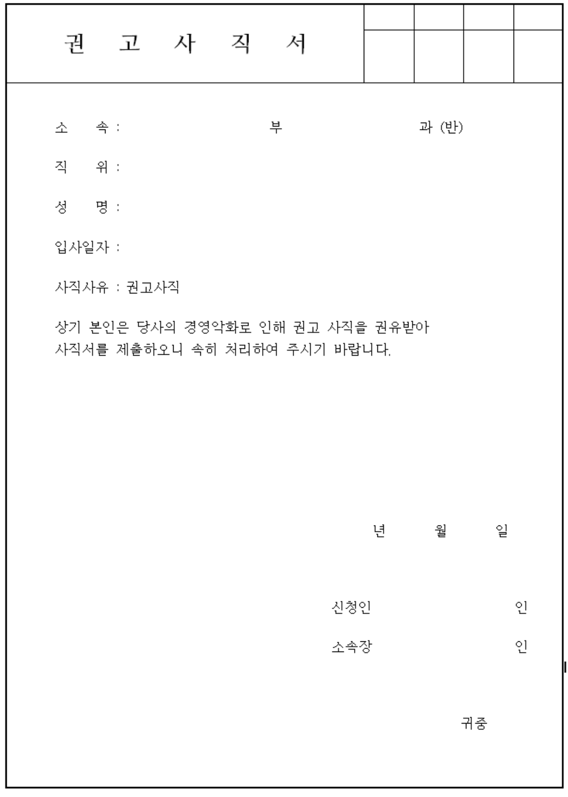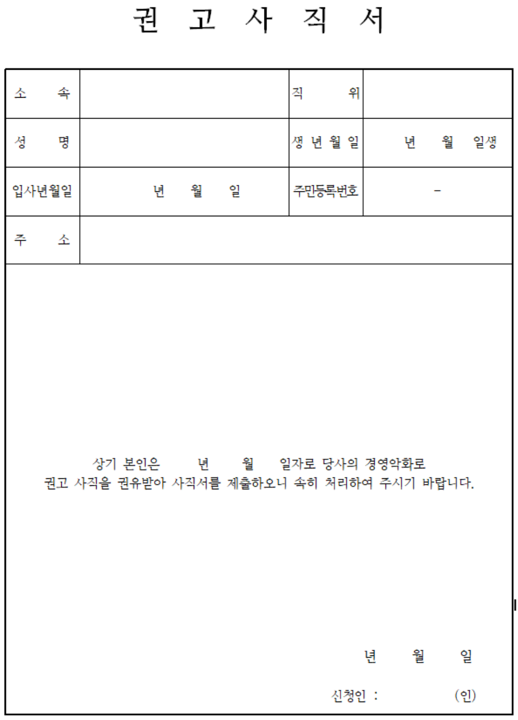 권고 사직서 양식 2
