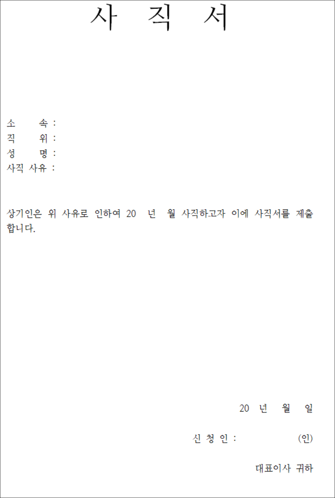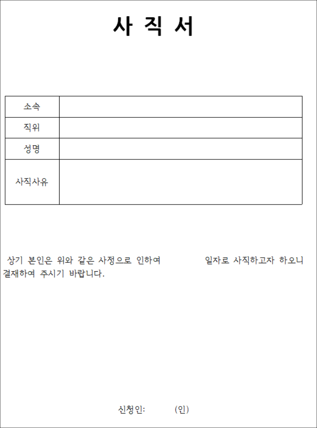 일반 사직서 양식 1