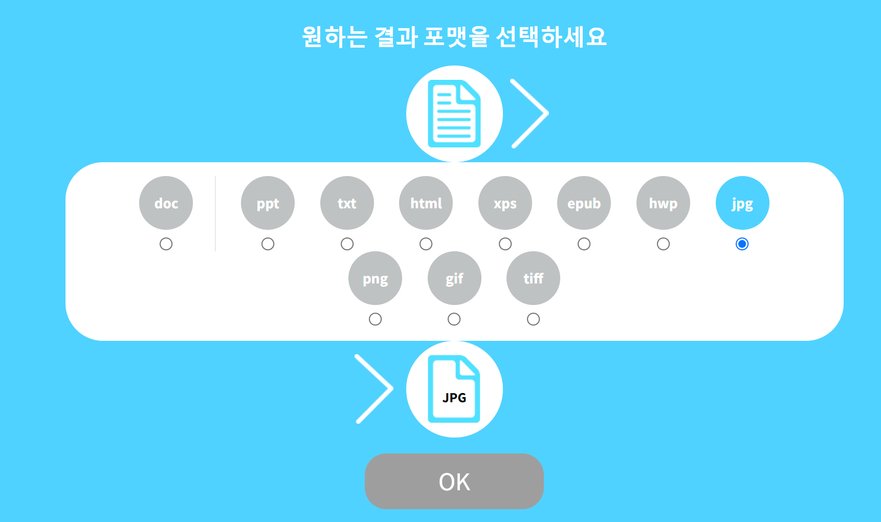 지원하는 포멧은 doc, ppt, txt, html, xps, epub, hwp, jpg, png, gif, tiff 이다. 아쉽게도 hwp는 지원하지 않는다.