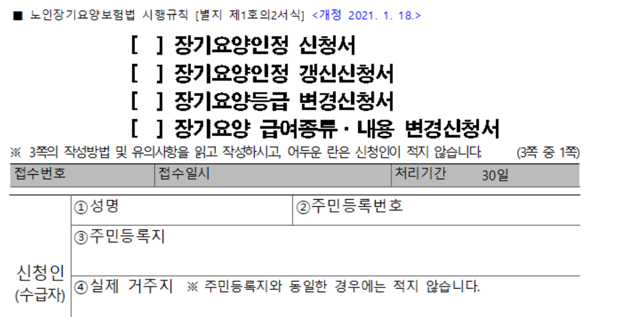 장기요양인정_신청서,_장기요양인정_갱신신청서,_장기요양등급_변경신청서,_장기요양_급여종류내용_변경신청서_20210118.hwp