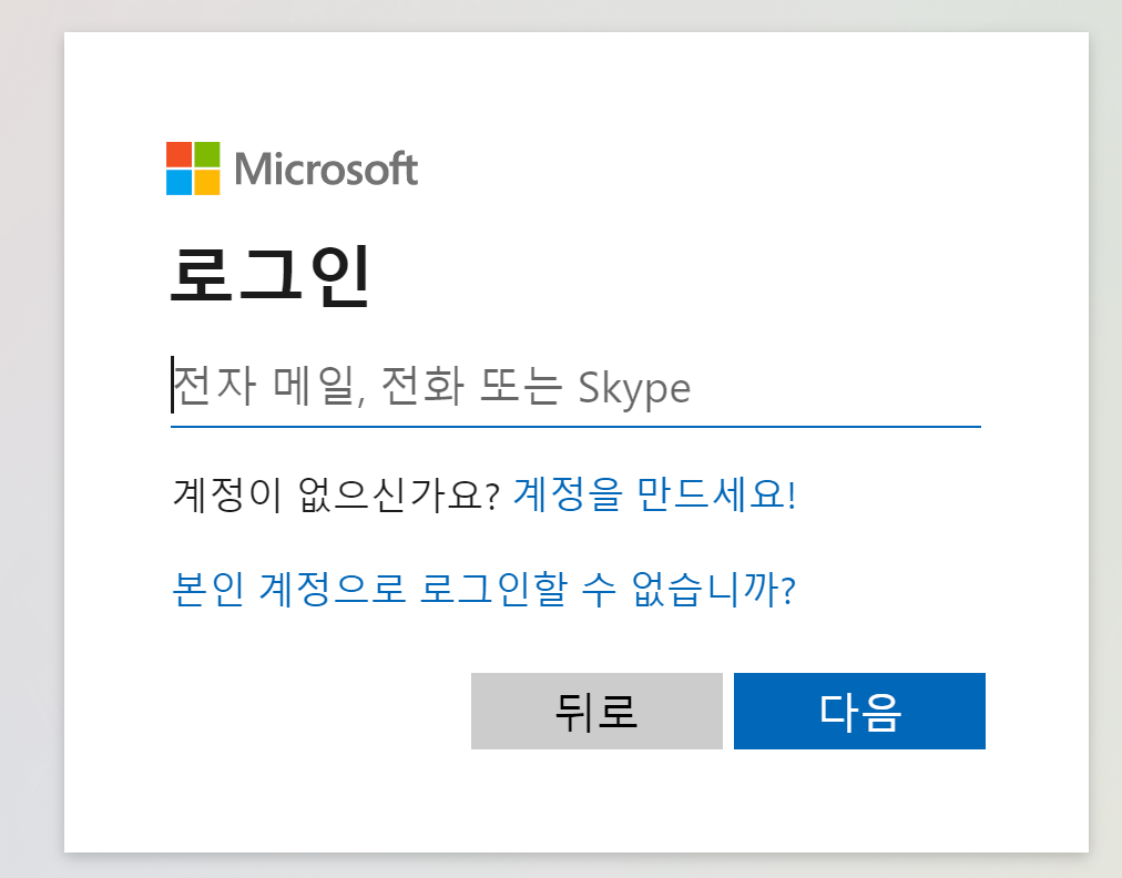 http 링크를 클릭하면 마이크로소프트 계정 로그인을 원한다.