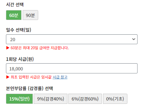 가족요양급여 실수령액 모의계산기 ( 시급형 )
