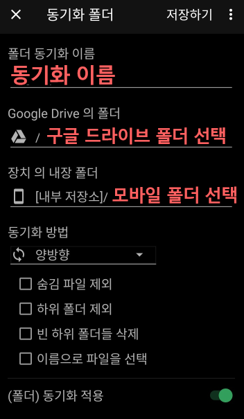 ( 모바일 폴더와 공유하는 구글 드라이브 내 폴더를 사전에 하나 생성해 두자. )