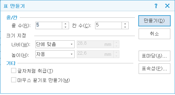 문서 작성 중에 중요한 것이 표 만들기이다.