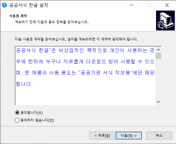한컴오피스에서 제작하여 무료로 제공하는 hwp 편집 프로그램 "공공서식 한글"이다.