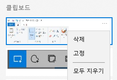클립보드 목록에서 이미지를 클릭하면 자동으로 삽입되고 점(...) 아이콘을 누르면 저장된 클립보드를 삭제할 수 있다.