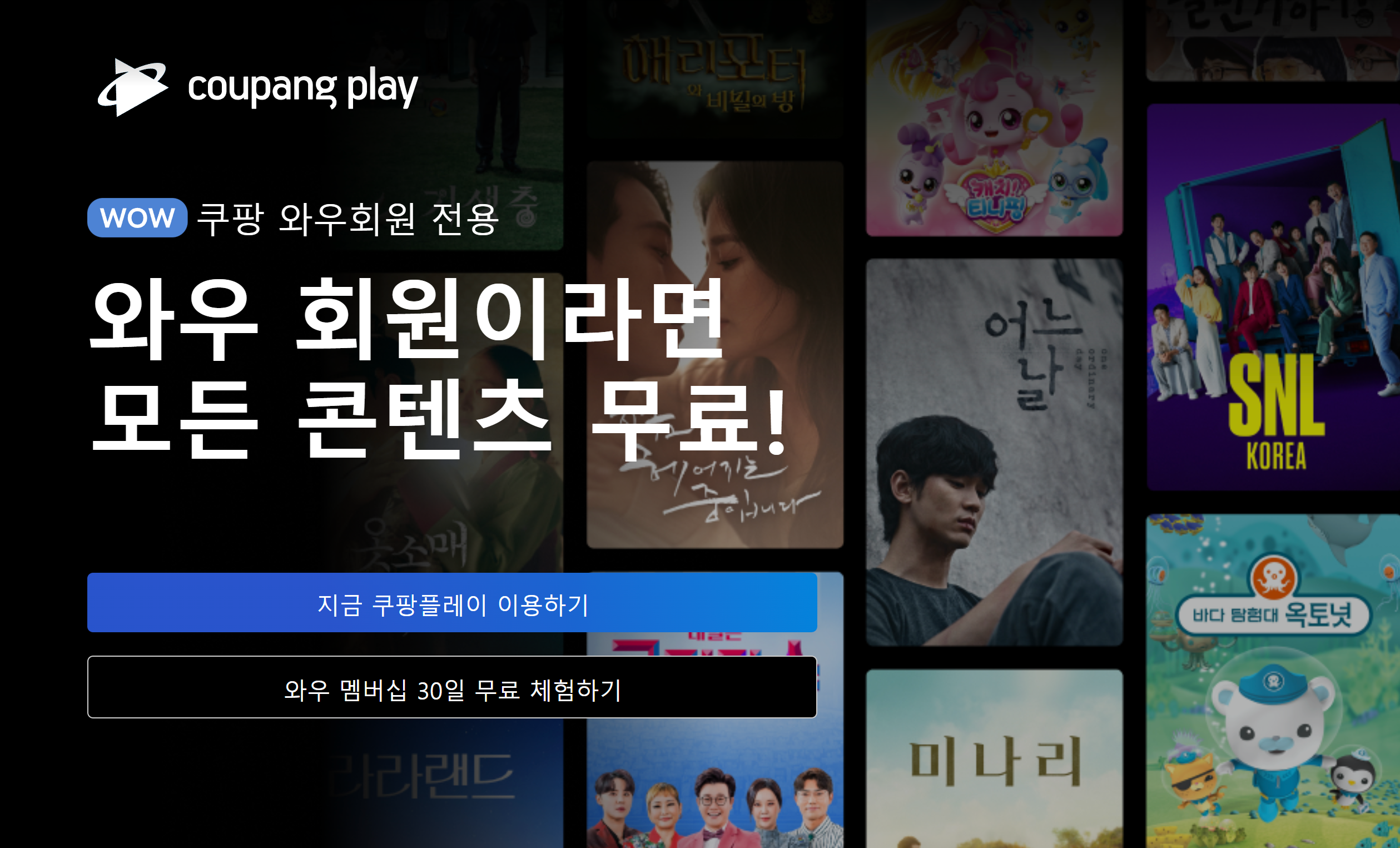 기존의 쿠팡 로켓와우 가입 회원이라면 무료로 쿠팡플레이를 이용할 수 있다.