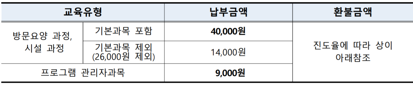 | 방문요양과정 | 6만원 |