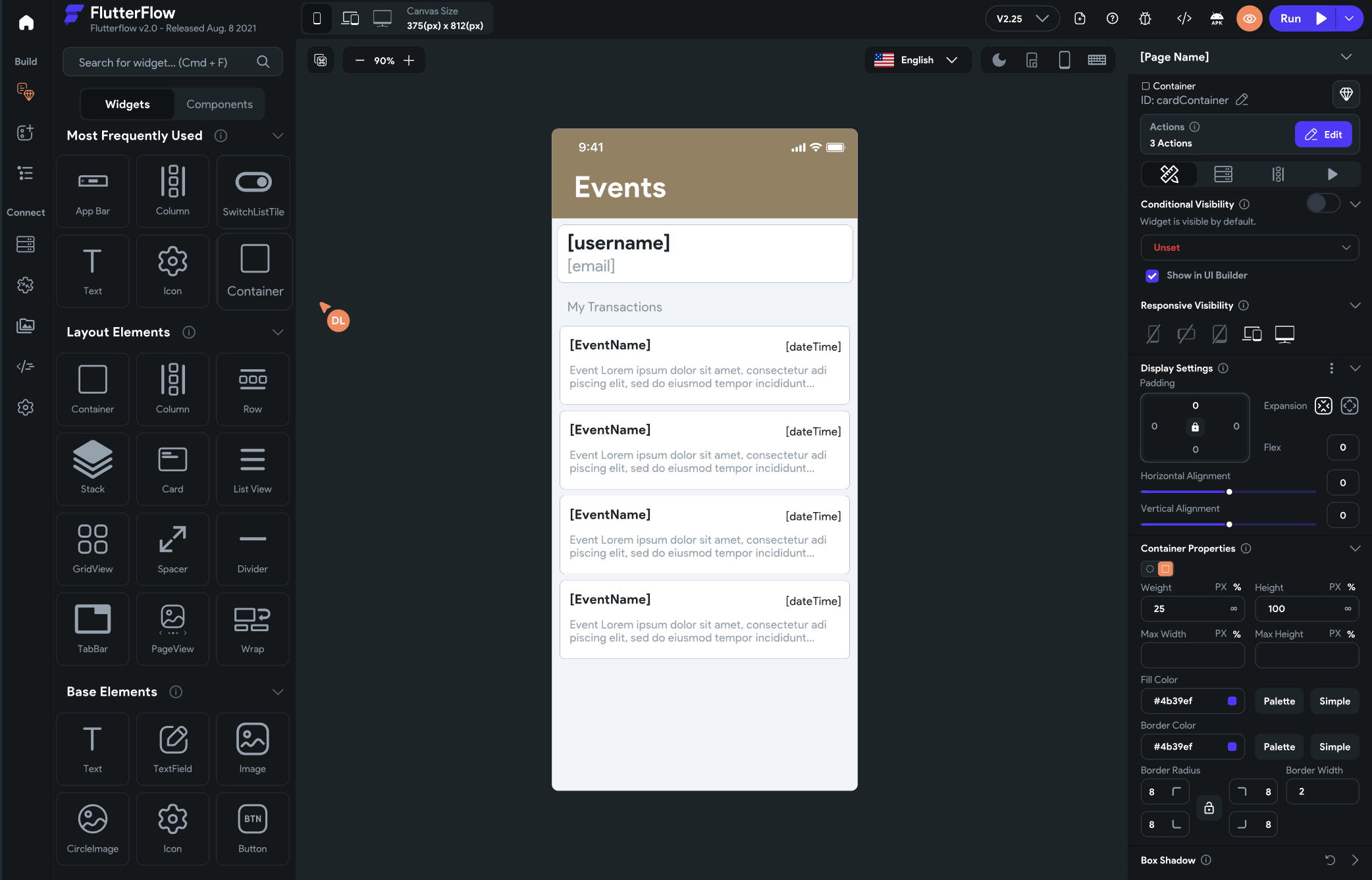 마치 포토샵처럼 여러 위젯들을 드래그하여 디자인이 가능하기 때문에 간단한 앱 정도는 코딩없이도 가능하다. 하지만 코딩을 하지 않으면 한계는 있을 것으로 보인다.