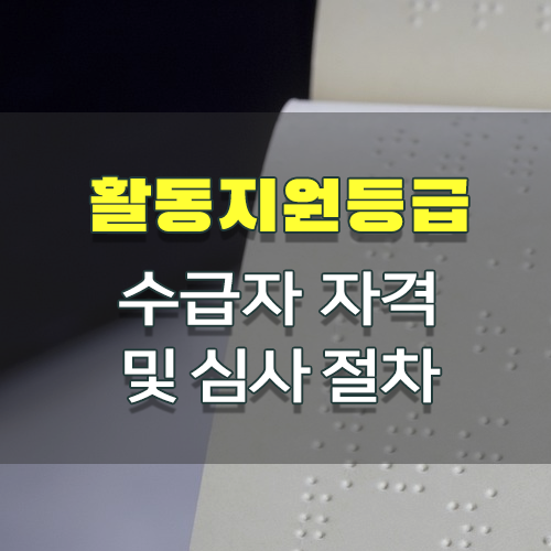 장애 유형과 정도에 따라 진단서, 소견서 등을 필요로 하며, 장애인의 집으로 방문 조사를 통해 생활의 불편함 정도, 활동지원급여가 필요한지를 직접 조사하게 된다.